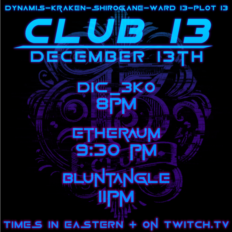 Welcome to Club 13, where the pulse of industrial, noize, and goth music collides with the whim of fate. Nestled in Dynamis - Kraken, Shiro Ward 13, Plot 13, this venue emerges from the shadows only on the 13th of every month, a fleeting yet unforgettable experience of luck and misfortune.Club 13 is more than a dancefloor—it is a sanctuary for those who revel in the night, a place where roleplay isn’t just welcomed, but celebrated. Step into a world where stories unfold beneath flashing lights, where immersive experiences take center stage, and where music fuels the energy of the damned and the divine alike.At its heart, Club 13 is powered by premier DJs, with our resident house DJ, DJ EtherauM (Lucid Nytemare), ensuring that every night spent here is one of hypnotic beats and relentless energy. The bar serves decadent drinks, and for those seeking a more personal connection, an escort is available when the club doors are closed.True to its nature, Club 13 thrives on collaboration, partnering with other venues when fate aligns and the 13th falls on their club night. It is a space shaped by the hands of fortune and chaos, a fleeting event that leaves a lasting impression.More than just a venue, Club 13 is a roleplay-driven Free Company, one that actively supports and encourages storytelling within its walls. When not in operation, the club is available free of charge as a roleplay venue—provided all narratives remain collaborative and non-inflammatory.Dance. Roleplay. Tempt Fate.Are you ready to embrace the unknown?